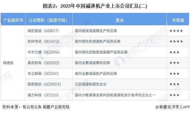 行业主要上市公司:绿的谐波(688017);双环传动(002472);中大力德(002896);昊志机电(300503)等