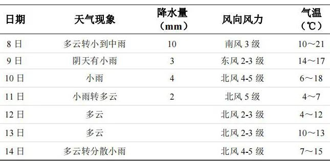 (其中10日湘北局地大雨)