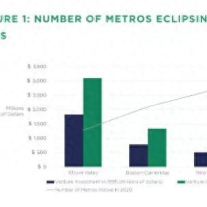 相比之下,构成腹地地区的一百多个大都市仅占所有风险投资的9%。与此同时,三个最大的科技中心在过去十年中的风险投资份额显著增长:纽约市增长6.7%、旧金山增长4.7%,洛杉矶增长1.5%。
