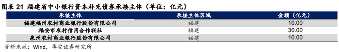 目前福建区域已发行50亿元中小银行资本补充债券,分主体来看,共3家商业银行主体承接资本补充债券。