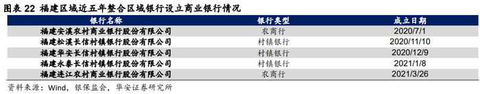 从新设银行的方式来看,2020年至今成立的5家福建省商业银行均采取新设(2家农商行,3家村镇银行)的方式组建商业银行。