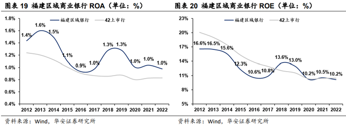盈利能力方面,2022年福建区域商业银行ROA均值为0.98%,ROE均值为10.15%。
