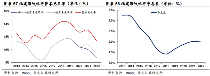 从资本充足率角度来看,2022年福建海峡银行核心一级资本充足率为8.7%,资本充足率为11.39%。从净息差角度来看,2022 年福建海峡银行净息差有所收窄,为1.99%。