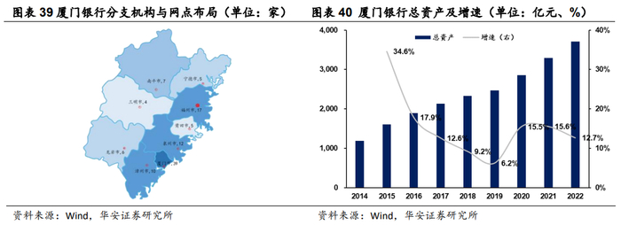 从资产增速角度来看,厦门银行2022年资产增速达12.66%,总资产达3712亿元,位居福建省第2。