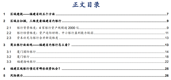 福建省共134家商业银行,其中厦门国际银行、厦门银行、福建海峡银行等35家银行有债券发行。本文从股权结构与变更、网点与对外投资布局、资产负债结构、盈利状况、资产质量等方面梳理了福建区域主要的三家商业银行:厦门国际银行、厦门银行、福建海峡银行。