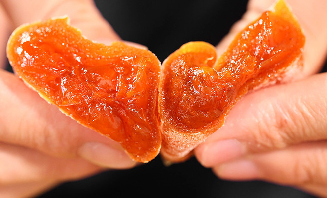 采摘、削皮、吊柿、挂霜,历时数月,经由风与阳光的滋养,最终凝成令人垂涎的美味——富平柿饼。