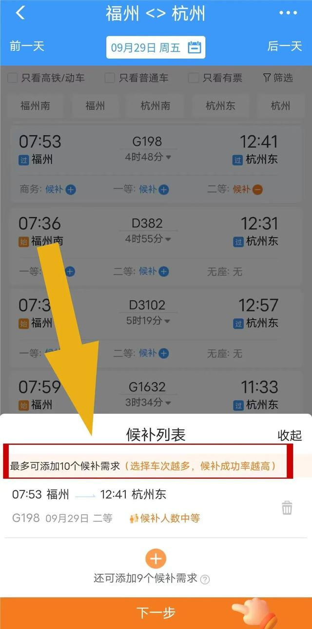 用户在提交候补订单时需确定候补截止兑现时间;候补终止时间不晚于开车前2小时。