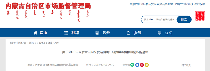 关于2023年内蒙古自治区食品相关产品质量监督抽查情况的通报