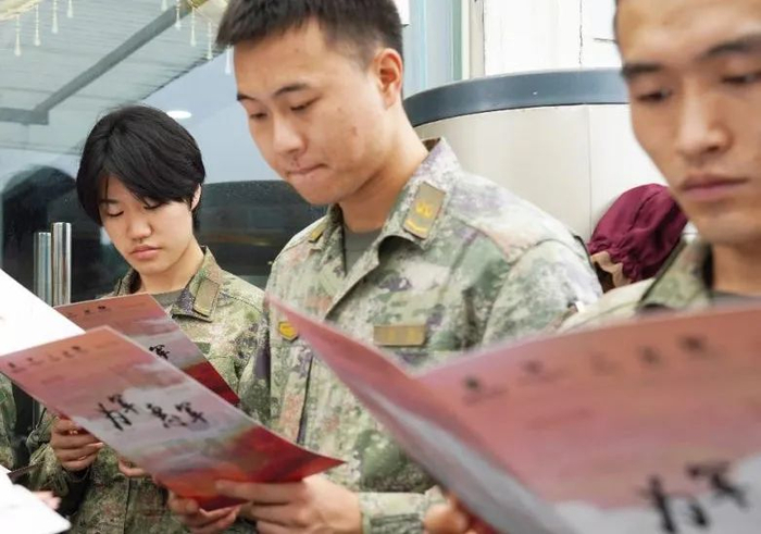 ▲部队官兵阅读成都望江宾馆发放的为军惠军服务手册