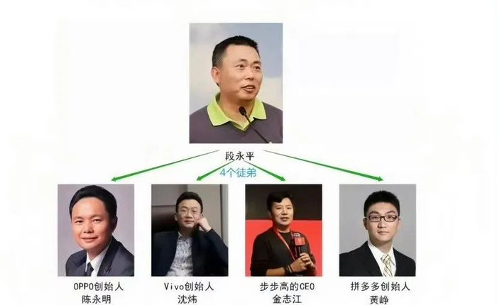 段永平是大佬中的大佬。他的门徒中,除了OPPO创始人陈明永、vivo创始人沈炜,还有拼多多的创始人黄峥。