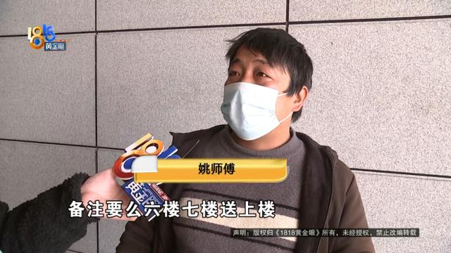 姚师傅:备注要么六楼七楼送上楼,不要打电话,或者带点东西,只要要求不过分的,我们都会。干的就这活,咱也不想找麻烦,出来就是挣钱的,电梯坏了让我爬个十楼,我都能爬,无所谓,你说个大哥辛苦了。这种反正我搞不了。