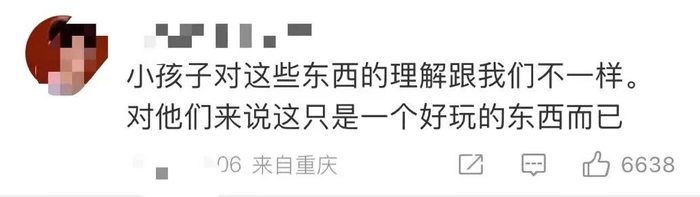 “小孩子对这些东西的理解,跟我们不一样。对他们来说,这就是个好玩的东西而已”。
