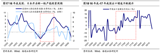 16-17年企业盈利较强的支撑是中国经济在供改和棚改两大驱动下实现较快增长。随着库存周期见底回升,本轮企业盈利表现较强,17年全A归母净利累计同比上升至18.1%,这主要得益于供给侧改革和棚改货币化为经济增长提供了驱动力。一方面,15年底开始的供给侧结构性改革促使周期行业开始去库存,16/06工业企业产成品库存同比降至创历史新低的-1.9%,为后续补库提供了空间;另一方面,16年棚改货币化带动地产投资回暖,明显拉动经济增长;此外17年海外设备投资需求上行对我国出口形成一定支撑,出口增速从16年底的-10.5%一路升至17年底的11.5%,也在一定程度上驱动经济增长。