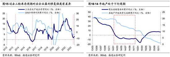 企业盈利表现强劲的前提是宏观层面经济增长有强动能支撑。根据上文分析,2000年以来中国经济共经历4轮完整库存周期,平均一轮历时39个月,第五轮库存周期或已于23年7月见底。截至 9月,产成品库存同比已连续2个月回升,标志当前进入新一轮补库阶段。历史显示,库存周期回升常伴随盈利周期启动,但由于宏观经济强度不同,每轮盈利修复程度不尽相同,例如13-14年偏弱、16-17年较强、19-20年偏强。下面将逐一复盘以上三轮库存周期见底回升阶段的宏观背景和企业盈利表现。