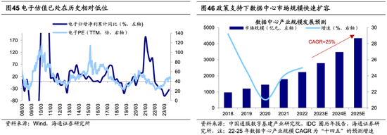②财政政策发力背景下,数字基建将受益。中央财政增发2023年国债1万亿元,未来财政政策或更加积极。11月23日,国家数据局局长刘烈宏在第二届全球数字贸易博览会数据要素治理与市场化论坛的致辞中表示,适度超前部署数据基础设施的建设工作。我们认为数字基建作为稳增长和调结构的重要抓手,有望成为政府支出的重点,相关领域有望受益。根据中国通服基建产业研究院的《中国数据中心产业发展白皮书(2023年)》,预计“十四五”期间我国数据中心产业规模复合增速将达到25%。