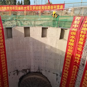 开封中州供水有限公司董事长刘玉海说,供水项目穿越铁路工期紧、施工难度大、安全风险高,是整个工程建设的“老大难”和重要控制性节点。此次顶管施工埋深近7米,套管管径4.1米,在全国下穿铁路顶管施工项目中直径尺寸之大也是数得着的。供水项目输水管线穿越陇海铁路施工,顶进长度为92.5米,过程中克服穿越铁路施工手续办理困难、地下水丰富、竖井开挖涌水流沙等不利影响,顶进过程中,又先后克服洞口止水圈漏水、刀盘带动机身旋转、开仓清渣等困难,历经100天的艰苦奋战,顺利完成顶管施工。施工采用泥水平衡顶管机分段顶进的施工方法进行。
