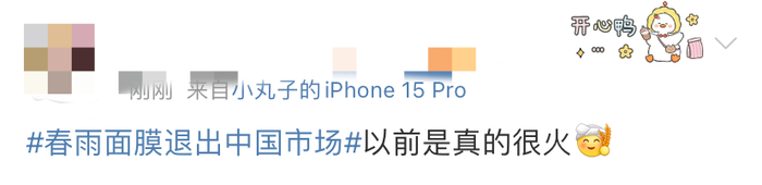 近日,#春雨面膜退出中国市场#话题上了微博热搜第一,曾经在国内红极一时的春雨面膜宣布将停止运营。