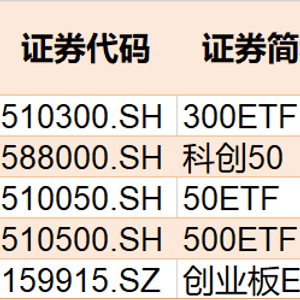 资金动向上,除沪深300ETF、科创50ETF份额分别减少9.38亿份、2.61亿份外,其余均出现增加,创业板ETF、上证50ETF和中证500ETF分别增加了5.35亿份、3.46亿份、2.96亿份。