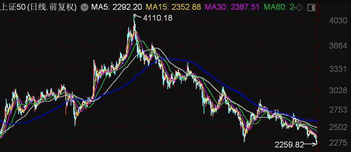 值得注意的是,上证50指数本周创近4年多来新低2259.82点。
