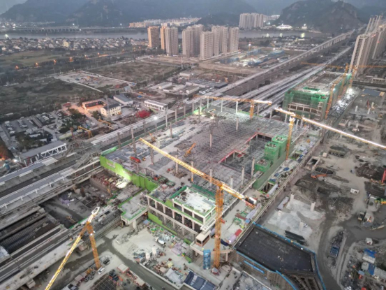 杭温高铁一期温州北站工程混凝土主体结构也顺利封顶,标志着温州北站建设取得了阶段性的节点突破。