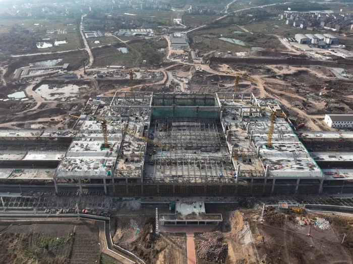 日前,杭温高铁横店站站房混凝土结构顺利封顶,为后续站房金属屋面铺装和装饰装修奠定了坚实基础。