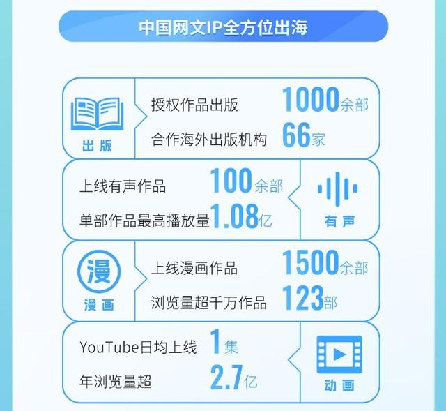 据中国作协数据,截至2022年,中国网文累计向海外上线翻译作品9000余部,同比2021年增长200%。到了今年10月,阅文数据显示,旗下海外门户起点国际已上线约3600部中国网文的翻译作品,同比三年前增长110%,阅读量超千万的作品达到了238部。其中,阅读量破亿的9部翻译作品中,讲述现代女性摆脱困境破茧成蝶故事的《许你万丈光芒好》,阅读量超过了4.5亿。