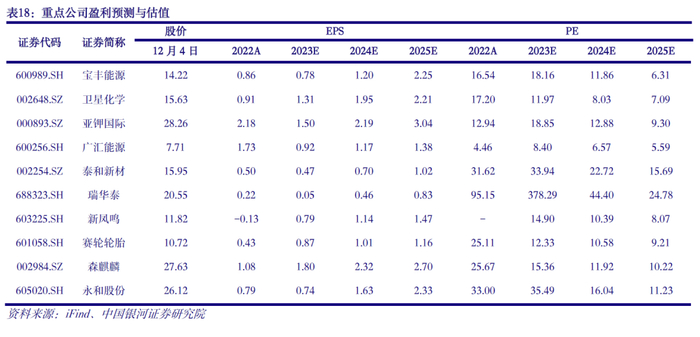 1)传统龙头规模扩张,成长确定性强。成本比较优势凸显,布局非石油路线核心资产,推荐宝丰能源(600989.SH)、卫星化学(002648.SZ)等。资源型企业持续放量,看好量能驱动下的业绩弹性,推荐亚钾国际(000893.SZ)、广汇能源(600256.SH)等。龙头白马产能扩张,打开新一轮成长空间,推荐万华化学(600309.SH)、华鲁恒升(600426.SH)等。