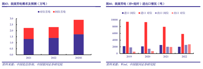 优质化纤龙头企业仍在扩张产能以抢占市场份额,同时落后小产能因能耗高、成本高等原因面临淘汰,行业集中度将进一步提升。如,涤纶和氨纶仍处在产能扩张周期,新增产能主要集中在龙头企业;粘胶短纤仍处在过剩产能消化期,且持续有小产能退出。看好相关龙头企业景气底部向上且兼具成长性方面的投资机会,推荐新凤鸣(603225.SH)、桐昆股份(601233.SH)等,建议关注华峰化学(002064.SZ)、中泰化学(002092.SZ)、三友化工(600409.SH)等。