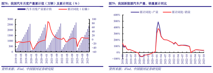 政策持续刺激,国内汽车产销有望维持较高水平。2022年5月31日,财政部和税务总局发布了《关于减征部分乘用车车辆购置税的公告》,对购置日期在2022年6月1日至2022年12月31日期间内且单车价格(不含增值税)不超过30万元的2.0升及以下排量乘用车,减半征收车辆购置税。2022年9月26日,财政部、税务总局、工业和信息化部联合发布《关于延续新能源汽车免征车辆购置税政策的公告》,对购置日期在2023年1月1日至2023年12月31日期间内的新能源汽车,免征车辆购置税;2023年6月19日,继续联合发布《关于延续和优化新能源汽车车辆购置税减免政策的公告》,延长新能源汽车免征购置税期限至2025年12月31日、对购置日期在2026年1月1日至2027年12月31日期间的新能源汽车减半征收车辆购置税。2023年1-10月,我国汽车产量、销量分别同比增长8.0%、9.1%。我们认为,汽车购置税优惠政策等将刺激汽车产销量维持在较高水平。