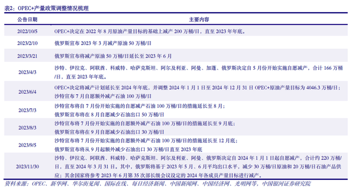 2023年以来,国际油价先抑后扬。上半年,欧盟对俄罗斯石油制裁效果不及预期,美联储加息、欧美银行业危机等引发市场对远期经济衰退担忧,油价震荡回落;下半年以来,供给端主导国际油价,尤其是沙特实施自愿额外减产、中东地缘政治局势升温等,油价有所上行。展望2024年油价走势,我们认为仍需从供需两端来看,具体分析如下: