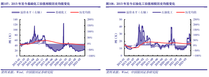 从估值来看,截至12月4日,基础化工和石油化工PE(TTM)分别为28.3x、19.9x,较2013年以来的历史均值42.1x、17.0x溢价水平分别为-13.8%、2.9%,估值分位数处在31.3%、71.3%。当前时点基础化工行业处在2013年以来的历史较低位置,中长期配置价值凸显。