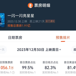 其中,《涉过愤怒的海》《再见,李可乐》均已上映,仅《一闪一闪亮星星》处于预售阶段。早在12月6日,《一闪一闪亮晶晶》预售票房便已经破亿;灯塔专业版数据显示,其首日预售票房超过7000万,成为中国影视国产片预售首日票房冠军、贺岁预售最快破亿影片,目前累计预售票房已经达1.91亿元。