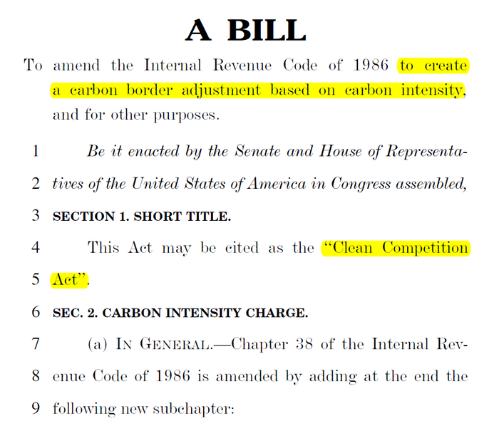12月6日,美国民主党参议员Sheldon Whitehouse向参议院再次提交了设立美国“碳关税”的立法提案——《清洁竞争法案》(Clean Competition Act)
