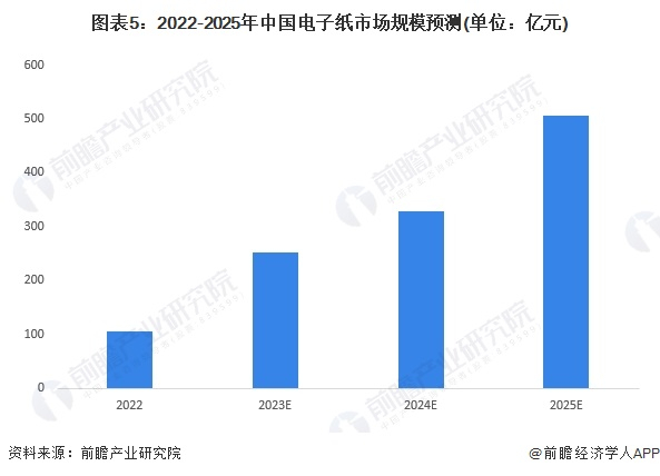 未来随着我国居民人均可支配收入的逐渐提高,人们对社会日常服务提出了更高的数字化、现代化要求,进而推动电子纸市场规模将进一步扩大,预计到2025年,中国电子纸市场规模有望突破500亿元。