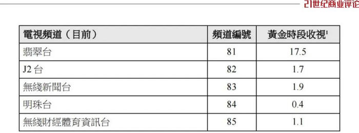 其中,翡翠台名头响亮,是当地最受欢迎的频道,黄金时段收视率达到17.5%。