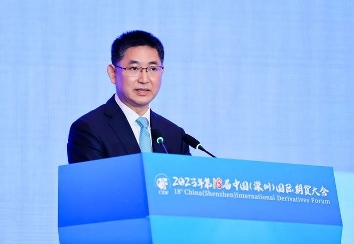 李超在致辞中表示,当前我国期货品种注册制全面落地,总品种数达到131个,覆盖农产品、金属、能源、化工、航运、金融等国民经济主要领域,市场运行质量稳步提升。2023年1至11月,我国期货市场累计成交量78.1亿手,成交额520.5万亿元,同比分别增长27.9%、6.9%;商品期货市场成交量在全球总量中占比超过七成,在保持自身市场稳定运行的同时,积极服务保供稳价大局。