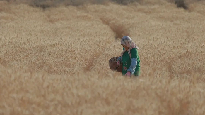 菜籽沟位于天山脚下,地势开阔,曲线起伏延绵又极尽舒展。当金色的麦浪翻涌,有种生命的华丽感。这也是刘亮程最珍视的风景——农民种出的风景,旧时的家园。