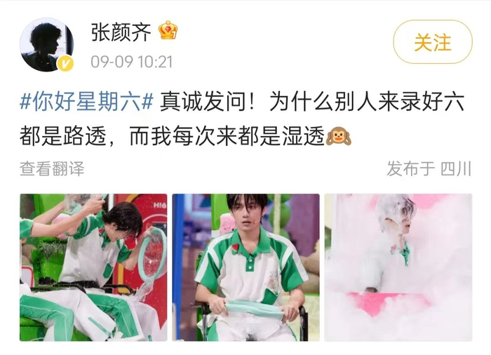 而这一人设能立得住,还得靠几位“损友”——王鹤棣、秦霄贤、杨迪,尽管张颜齐没去过几次《你好,星期六》,但只要有这仨在,张颜齐就只能湿着离开录制现场↓↓