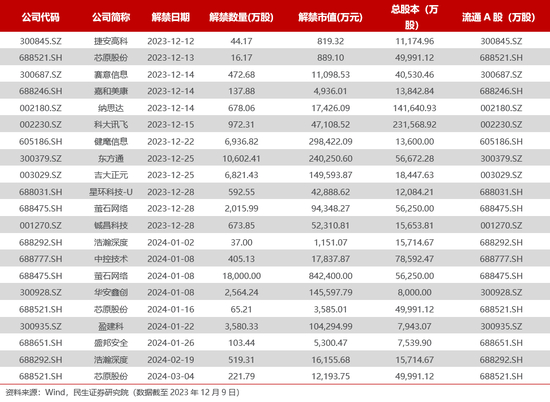 嘉和美康:12月05日消息,公司本次上市股票类型为首发战略配售股份;股票认购方式为网下,上市股数为1,378,775股,上市流通数量等于该限售期的全部战略配售股份数量,本次股票上市流通总数为1,378,775股,本次股票上市流通日期为2023年12月14日