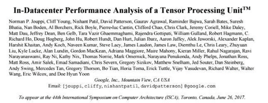 图6:2017年4月谷歌首次发表了详细介绍其自行设计的AI芯片TPU细节的论文《数据中心的 TPU 效能解析》