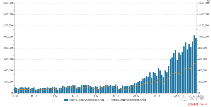 4、11月我国汽车出口52.4万辆,同比增长41.6%。今年出口476.2万辆,同比增长59.8%,出口金额927亿美元,同比增长70.9%,量价齐升。今年我国的汽车出口大概率就是全球第一了,这还是出口主要是油车的情况下实现的。