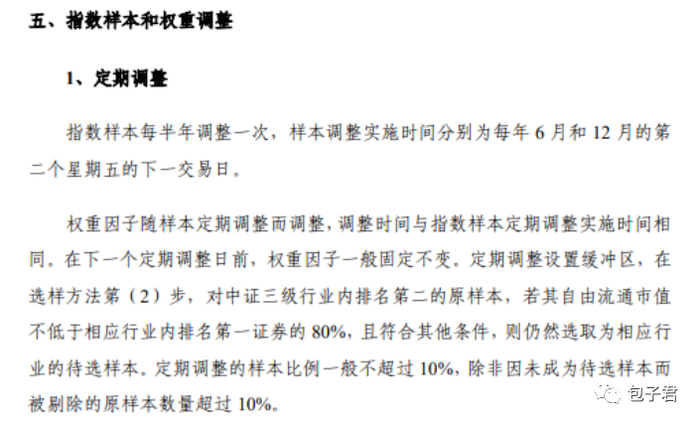 这个指数是每半年调整一次成份股,一次调整不超过5个成份股。