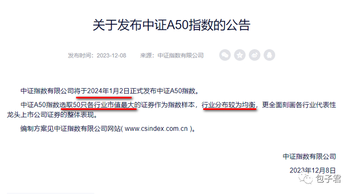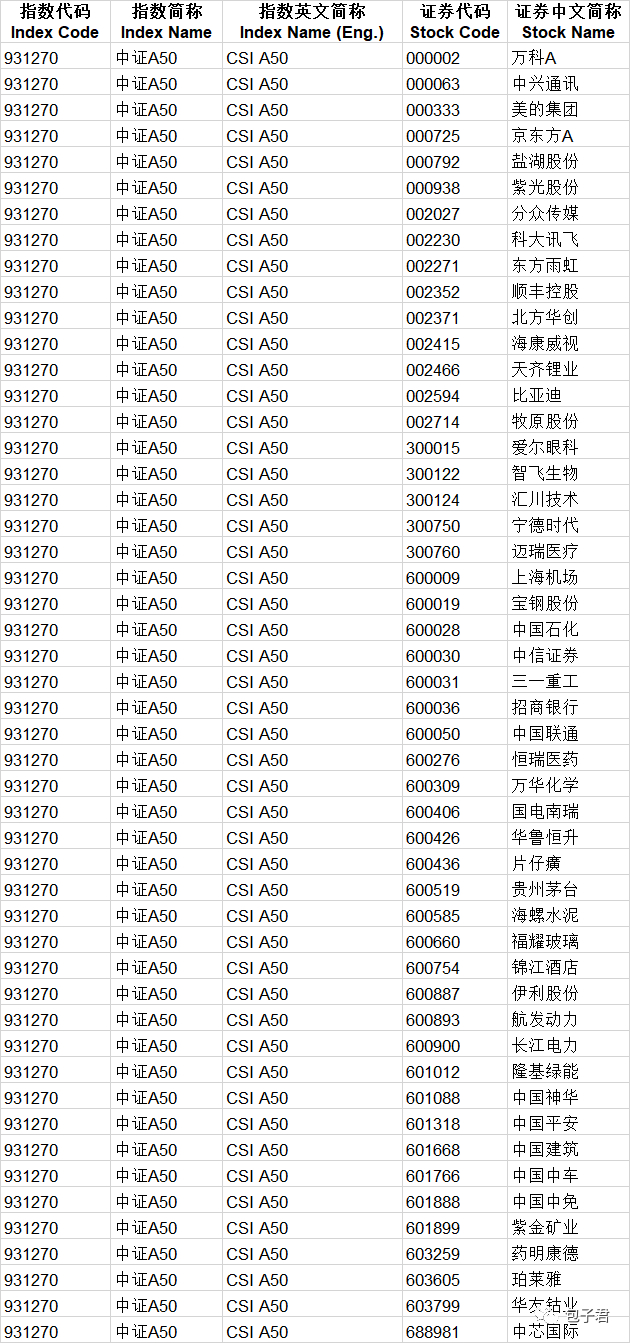 之前的不少指数容易出现“某个赛道涨到巅峰时,就把相关公司都纳入指数;等这个赛道跌到低谷时,又把这些公司都踢出指数”的情况。中证A50指数编制规则修复了这个缺陷,中证A50指数是每个赛道只选一家公司,茅台、恒瑞、比亚迪、宁德、迈瑞、药明、伊利、宝钢等在各自的赛道的龙头地位都很难被颠覆,因此指数成分股变化的不会很频繁。