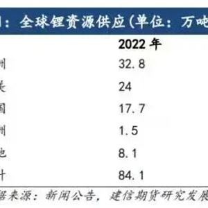 全球锂资源供应主要来自于盐湖提锂、矿石提锂以及回收提锂,盐湖提锂主要来自于南美盐湖以及中国青海盐湖;矿石提锂主要来自于澳洲锂辉石提锂以及中国江西锂云母和四川锂辉石;回收提锂市场刚刚起步,目前产量主要来源中国;2024年在澳洲、南美、中国以及非洲的锂资源供应还将进一步释放,预计全球原生料锂资源供应将达到148万吨,再生料锂资源以过去五年全球锂电池出货量复合增长率计算预计将达到14万吨,整体上预计2024年全球锂资源供应量为162万吨LCE。具体分析如下: