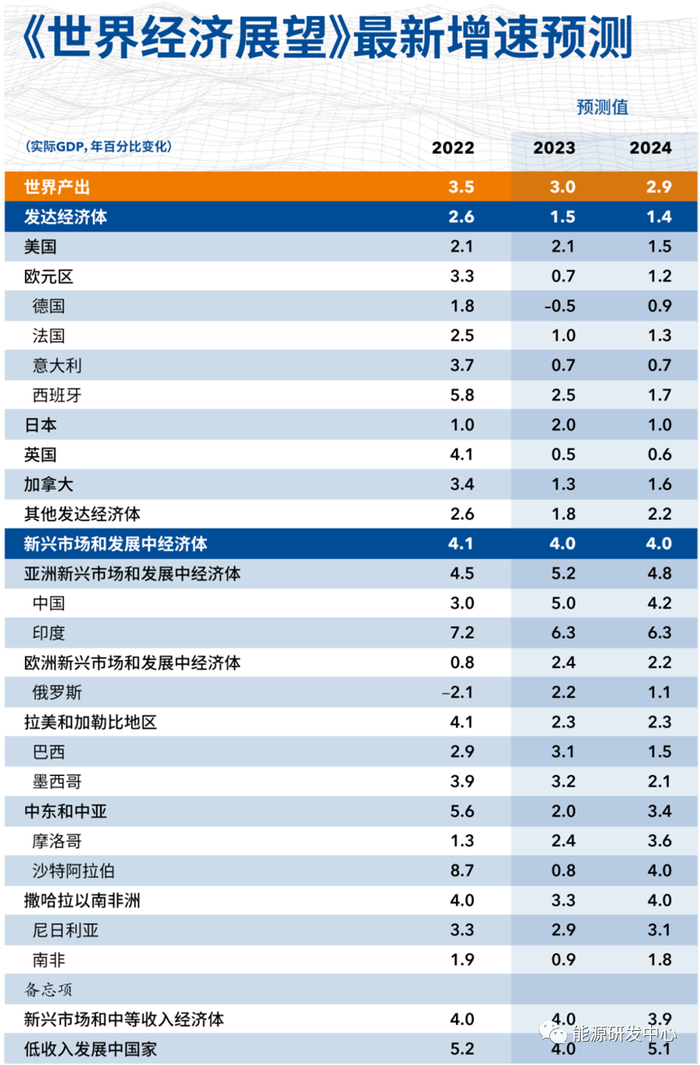 当地时间10月10日,国际货币基金组织(IMF)发布最新《世界经济展望》报告,预计全球经济增速将从2022年的3.5%放缓至2023年的3.0%和2024年的2.9%,仍低于3.8%的历史(2000-2019年)平均水平,且2024年预测值相比7月预测下调了0.1个百分点。发达经济体随着政策收紧开始产生负面影响,经济增速预计将从2022年的2.6%放缓至2023年的1.5%和2014年的1.4%。新兴市场和发展中经济体2023年和2024年的经济增速预计将小幅下降,从2022年的4.1%降至2023年和2024年的4.0%。具体到国家,欧元区的西班牙,美国和日本预计今年的经济增速将达到2.5%、2.1%和2.0%,领跑发达经济体。新兴市场方面,中国和印度今年的经济增速将达到5.0%和6.3%。全球经济正出现分化趋势,一些地区的经济活动远远低于疫情前的预测。相比新兴市场和发展中经济体,发达经济体的经济增速放缓更为明显。在发达经济体中,美国增长前景改善,其消费和投资展现出了韧性;相比之下,欧元区经济活动的预测值则被下调。许多新兴市场经济体展现出的韧性强于预期。