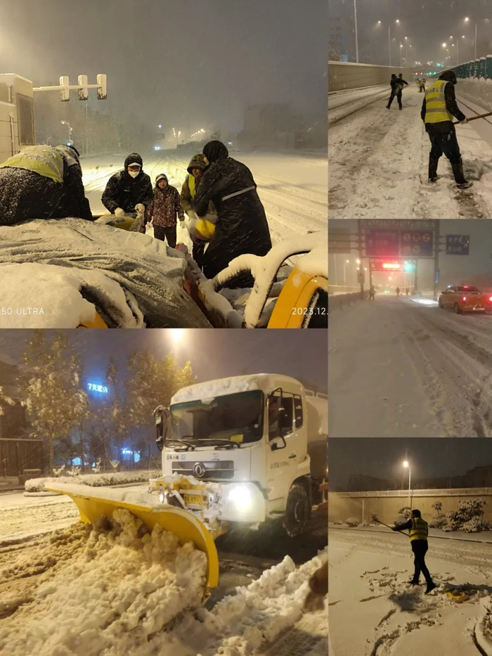 昨晚今晨,全市城区共出环卫保洁人员21580余人,出动各种车辆1217台次,小型推雪车133台,大型雪滚225台,综合除雪车120台,大型综合除雪车43台,雪铲195台;为应对道路结冰,各项除冰设备分别到重要道路节点、高架上下桥引道及主要道路下穿涵洞上下坡附近等指定位置,及时应对气温下降导致道路结冰情况,力保城区主要道路能够通行。