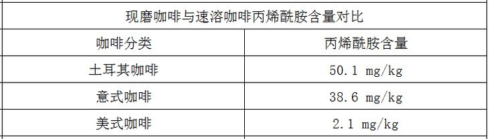 目前中国人摄入的丙烯酰胺很少,是安全的。而且,中国人喝咖啡其实很少,通过咖啡摄入的丙烯酰胺很少,还不如你早上吃的油条油饼平时吃的炒菜多。
