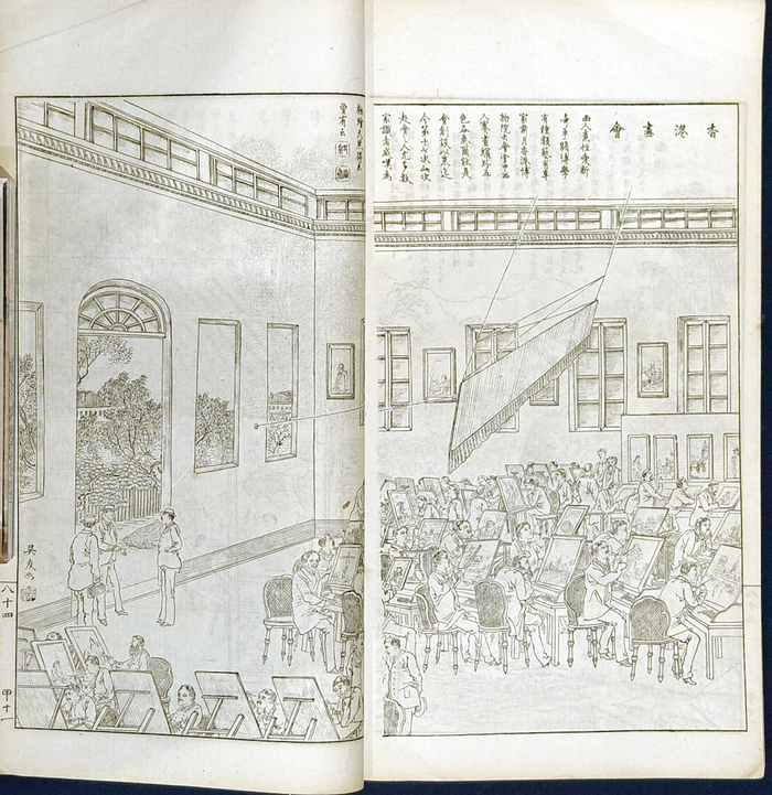 本次展览从上图馆藏点石斋石印书局所刊《点石斋画报》与1910年上海集成图书公司所出《点石斋画报大全》中精选画报作品三十余件,分为“何以家国”“民间百态”“奇技西来”三个部分,观众可循着晚清读者的阅读与观画视野,在《点石斋画报》颖异的时事与新知中,领略娱目之际的启迪之功。