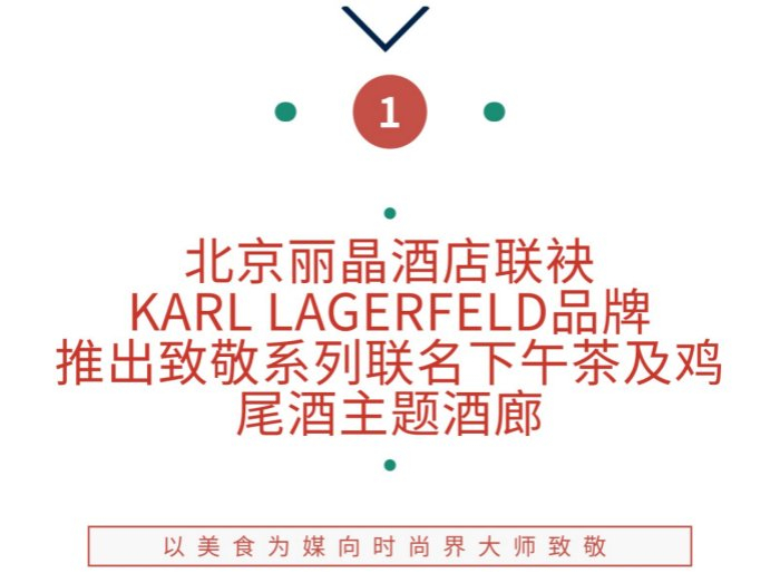 近日,北京丽晶酒店联袂KARL LAGERFELD品牌,呈现传奇致敬系列联名下午茶及鸡尾酒主题酒廊。此次联名下午茶,每一款小点都呈现了时尚与味蕾的跨界融合。致敬系列鸡尾酒主题酒廊,旨为致敬卡尔・拉格斐的黑、白、灰行走标志,调酒师在研创鸡尾酒之际提炼KARL LAGERFELD品牌的优雅精髓,诠释都市摩登的独特文化。此款联名鸡尾酒将仅限于邀约制的时尚快闪小型时装秀场供各界人士品鉴,也有私人高定款主题鸡尾酒将于王府井地区制高点丽晶俱乐部的鸡尾酒主题酒廊供客人品鉴。