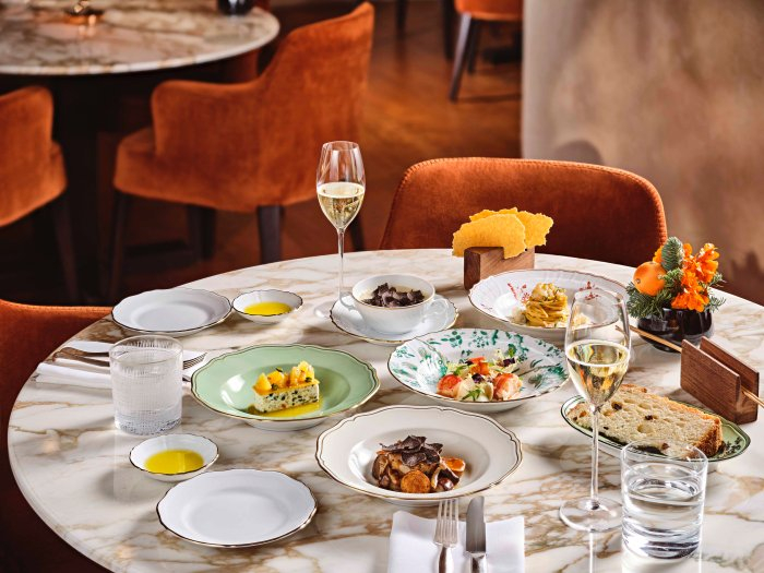 北京宝格丽酒店今年以“CELEBRATE MAGNIFICENT WONDERS欢庆奇迹时刻”开启节日季。北京宝格丽酒店米其林一星 Il Ristorante – Niko Romito 意大利餐厅主厨Niko Romito特别打造节日早午餐,以海鲜拼盘、精选冷盘与多款臻选意式意面开始假日慵懒的一天;12月23日和24日,餐厅将呈献六道式节日晚宴。其中,【蓝龙虾沙拉,芹菜头,芽苗菜及粉红胡椒】保持了蓝龙虾肉鲜美的口感,搭配爽脆的芹菜头和芽苗菜,粉红胡椒的微辣味道为沙拉赋予了一份微妙的辛香。【烤小牛肉配土豆,蘑菇及白松露】将牛肉烤制外表金黄,内里保持着嫩滑的质地,蘑菇与白松露的加入为菜品增添了一份自然的香气。